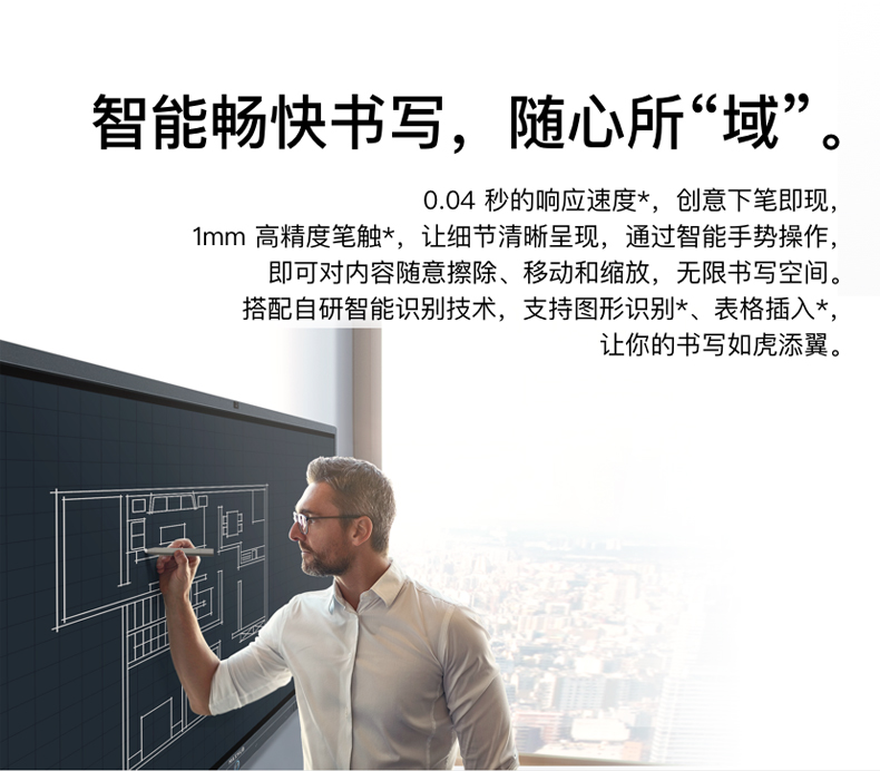 紅外+電磁雙控,4K高清, 無線傳屏,1024級(jí)壓力感應(yīng)  0.5mm書寫精度   0.04s超快響應(yīng),智能圖表。55/65/75/86英寸
